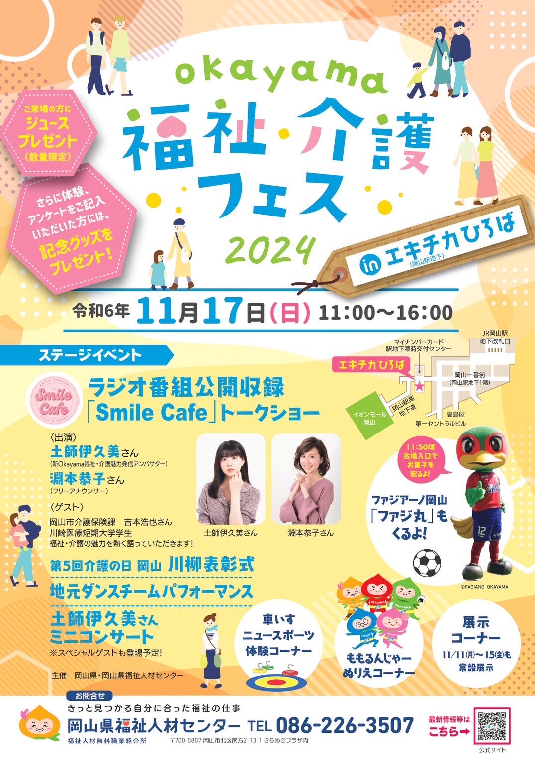 Okayama福祉介護魅力発信アンバサダーとして下記スケジュールで出演いたします