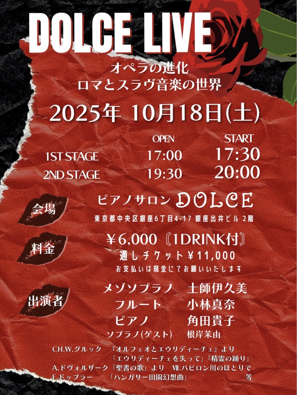 料金:6,000円1ドリンク付き(両部通し11,000円)※当日現金精算にご協力お願いいたします