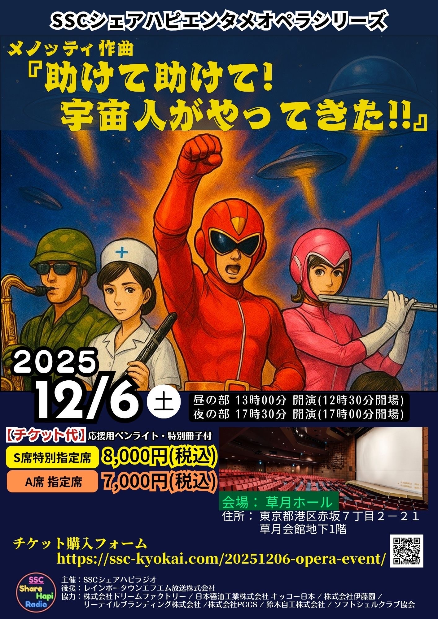 12/6(土)17:00~SSCエンタメオペラ『助けて助けて、宇宙人がやってきた!』にニューキルク嬢役で出演いたします!